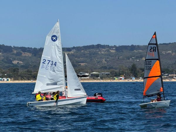 The day before was Race 6 of the Club Championship series. Elaine and I had driven down to Blairgowrie on Saturday to catch up with our Darwin friends, their children and grandchildren. Five Minnows had arrived from Darwin in a container to compete in the 50th Victorian Minnow Championships. On the veranda we ran into the Rawhides who were there to sail the Victorian Adams 10 Champs. After Day 1 they were leading.